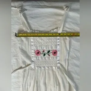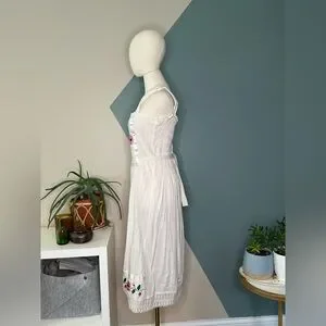 Cottagecore Midi Dress White Embroidered Boho Floral Eyelet Woven Size Small