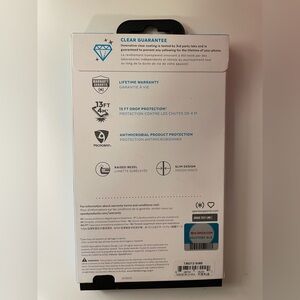 Features: lifetime warranty, 13 foot drop protection, Perfect Clear coating resists discoloration, anti microbial Microban treatment, raised bezel screen protection