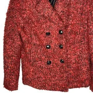 Robert Kitchen Canada Wool Blend Boucle Blazer M Double Breasted Coat Peony Blac