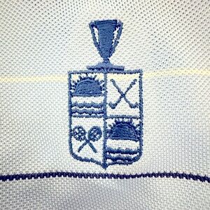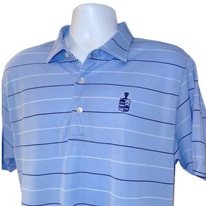 Peter Millar Summer Comfort Polo Shirt Blue Stripe Logo Men’s Size Large