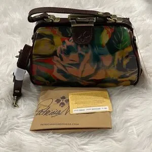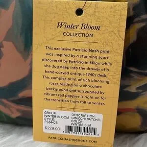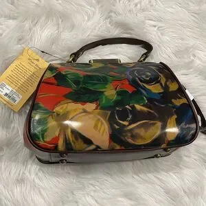 New with tag Patricia Nash Gracchi tailored frame leather satchel in Winter Bloom