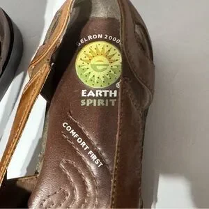Earth Spirit Comfort First Brown Leather Open Toe Slip On Sandals Size 6.5