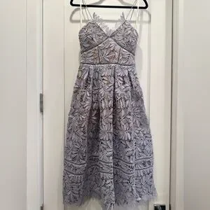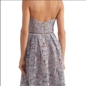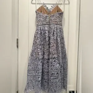 This stunning Self-Portrait dress features a sleeveless design with a sweetheart neckline, perfect for wedding guest or cocktail occasions. The pleated A-line silhouette offers a sophisticated and elegant look, while the structured fabric ensures the dress maintains its shape beautifully.