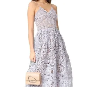 SELF-PORTRAIT Lilac and White Pleated A-Line Dress