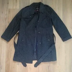 London Fog Navy Polka Dot Cotton and Spandex Trench Like / Rain Coat 🧥