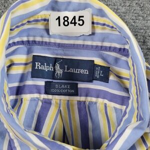Ralph Lauren Shirt Mens Large Blue Yellow Striped Blake Button Down Cotton Classic