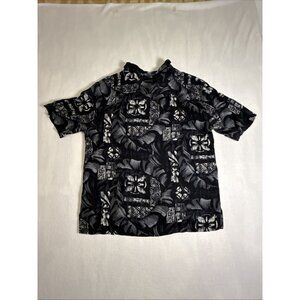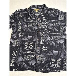 Caribbean JOE Men's Size XL Black White Rayon Button Down SS Hawaiian Shirt