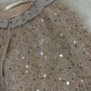 Stunning garment adorned with pearls and crystals. Ideal for glamorous events. New with tags but been in closet for 2 years frays from beading