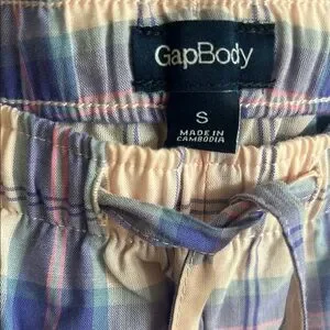 Lightweight cotton pants from GAP. Casual lounging or pajama pants. Comfortable elastic waist with tie. Feminine pink and purple plaid.