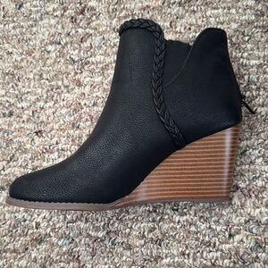 Elegant black ankle boots with braided detail. Perfect for any occasion.