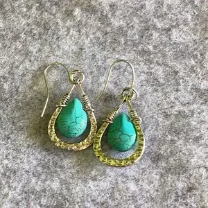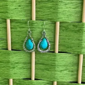 Elegant silver teardrop earrings featuring vibrant turquoise stones. Perfect for adding a pop of color to any outfit.