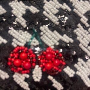 HOUNDSTOOTH Beaded CHERRY Pattern bag - Black and Red! Gorgeous! New