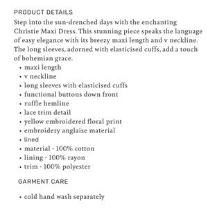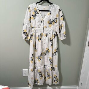 NWT Petal & Pup Yellow Floral Embroidered Midi Dress
