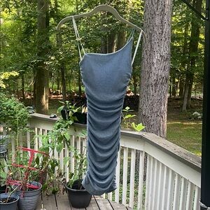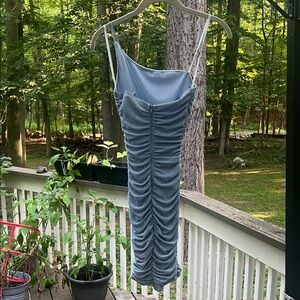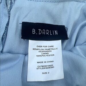 Turn heads in this chic B. Darlin one-shoulder bodycon mini dress in a shimmering light blue. Crafted with a flattering ruched design, this dress blends comfort and style with a touch of sparkle from metallic threading. Perfect for parties, nights out, or special events where you want to stand out.