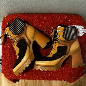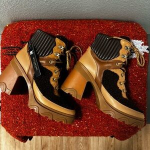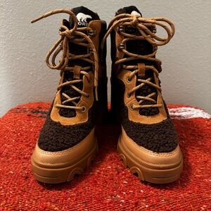 SOREL Women's Brex Cozy Mixed-Media Lace-Up Ankle Booties Blackend Brown Sz 7