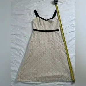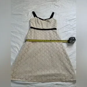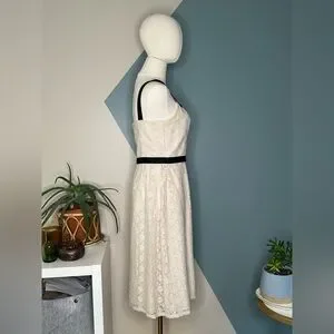 Ann Taylor LOFT 4P Petites Lace Fit & Flare Dress White Black Trim Midi