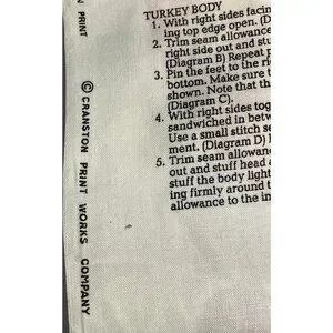 This fabric panel features a charming Thanksgiving Turkey design perfect for crafting enthusiasts. The material allows for easy cutting and sewing, providing an enjoyable DIY experience. Ideal for creating soft toys, decor, or unique gifts. Its vibrant colors and vintage style add a touch of creativity to your projects.