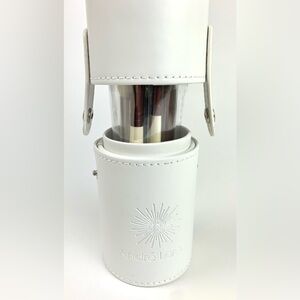 Very clever and charming vertical storage case houses five (5) makeup brushes. The brushes are made with LuxeFiber, a high-quality synthetic fiber that is ultra soft and gives a luxurious feeling.