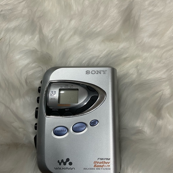 Sony WM-FX290W Walkman AM/FM/Weather Radio and Cassette Player. It features a digital-synthesized tuner for accurate AM/FM radio reception, a weather band to get local weather broadcasts, and a cassette player. It also has 33 preset stations, a Mega Bass sound system, and operates on a single AA battery.