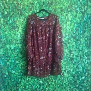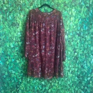 Chic floral long sleeve dress with a rich burgundy base and colorful floral patterns is available in a women’s size large and XL, brand new.