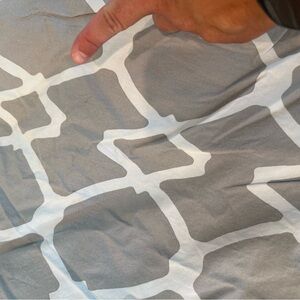 Condition: Good, last three pictures show three marks, 2 on the gray part of duvet cover, and one on navy part of euro sham