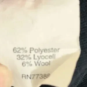 Cute dress with pockets. 62% polyester, 32% lyocell and 6% wool. Bust:34 Waist: 27 length: 36.5