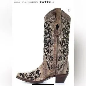 Elegant Corral boots featuring detailed black embroidery on distressed brown leather. Only worn for a couple of hours inside at a Jason Aldean concert. Great condition! NO low ballers!! No box. Purchased at