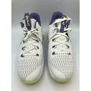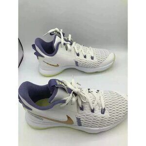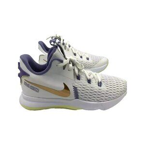 Elevate your athletic and casual style with these Nike LeBron Witness sneakers in size 11.5. These shoes feature a lace-up closure, low-top shaft, and a solid summit white color with bronze accents, perfect for any season. The breathable fabric lining, cushioned insole, and standard shoe width provide all-day comfort and support for activities like cross training, CrossFit, and basketball. The synthetic upper material and rubber outsole ensure durability while the foam insole and Nike LeBron product line guarantee quality. These shoes are not handmade and are manufactured in Vietnam with a style code of CQ9380-102. The theme of these shoes is colorful sports, and they are not customized or signed.