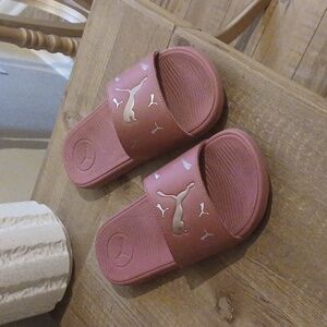 Women's Puma Slides Sandals With Metallic Gold Accent. Size 8