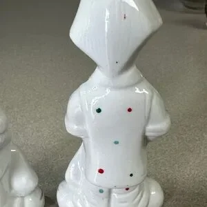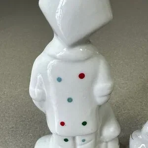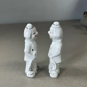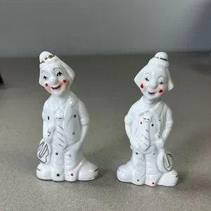 Delightful porcelain clown figurines in a crisp white finish with colorful accents. Perfect for adding a playful touch to your home decor.