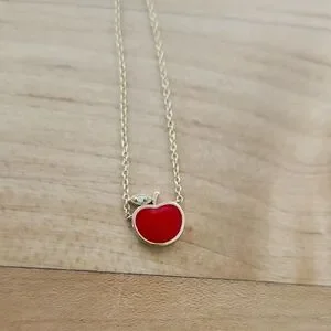 Never worn. This charming enamel apple necklace with diamond detail is still up on Baby Gold's website for $270. 14k, enamel and diamond, 16" length (1)