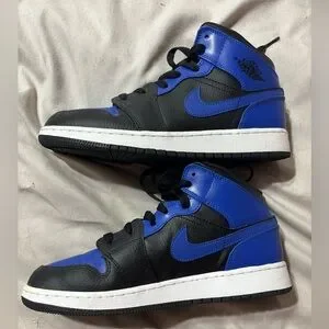 These are in excellent condition worn only a couple times. Sleek Jordan sneakers in black and blue. Ideal for everyday style.