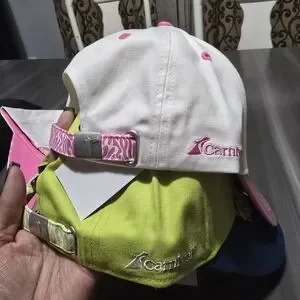 This listing is for your choice of 1 hat from the photo. please let me know if you want the pink hat of the blue/green hat at purchase. All are new with tags and purchased from a Carnival Cruise. Please look at all photos to see all sides of the hats. non smoking home!