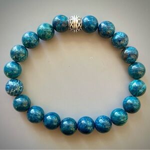 Blue Green Beaded Bracelet with Stainless Steel Accent