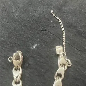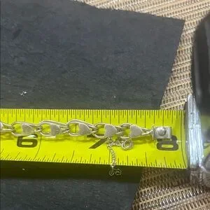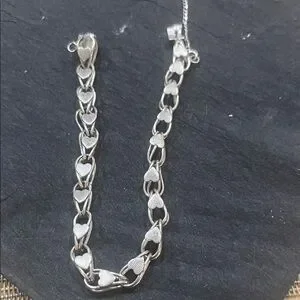 This elegant sterling silver heart link bracelet adds a touch of sophistication to any outfit. Perfect for any occasion. Has safety chain on clasp needs to be attached 8 grams
