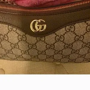 Beige and Gold Monogram Shoulder Bag