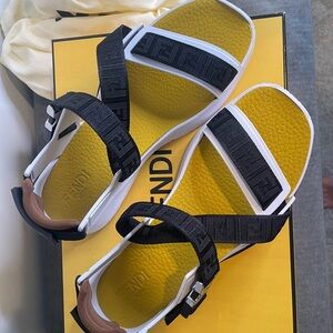 Stylish Fendi sandals with adjustable straps. Features a bold design with metallic accents.
