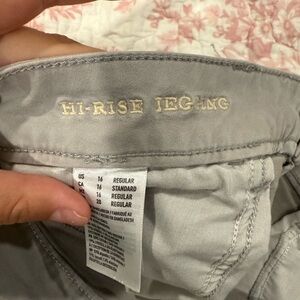 Trendy gray moto pants with unique stitching details. Perfect for a chic look.
