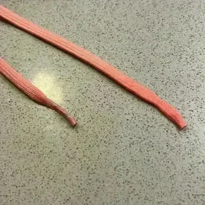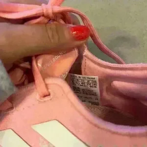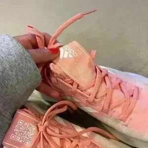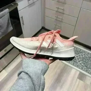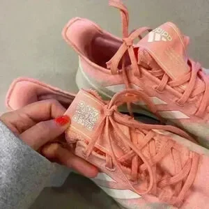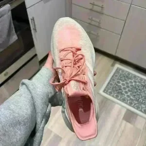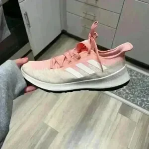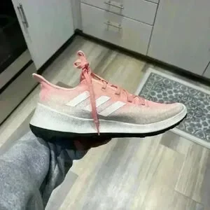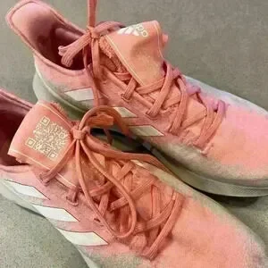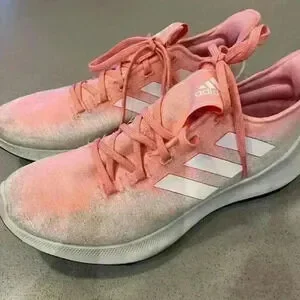 These are a gorgeous pink and there is minor wear on inside and outside. White parts have minor grey tone to them from wear. Very comfy. One set of shoe laces is missing the small plastic ends on it as pictured