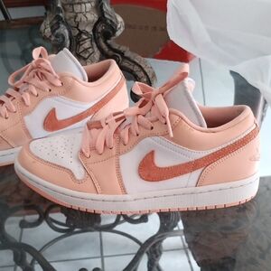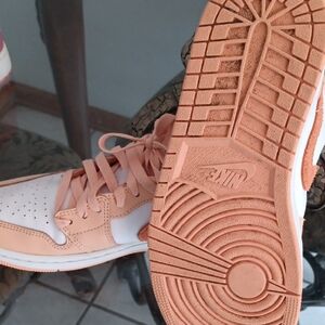 Stylish Jordan sneakers in peach and white. Ideal for everyday wear.