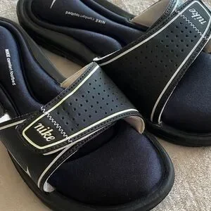 Sleek Nike slides with a black base and white accents. Ideal for everyday comfort.Preowned, nice and clean