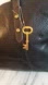 Fossil ๐ค Black Leather Tote Bag With ๐ Outside is in great used condition, inside has a dusty bottom pictured above, black leather tote bag with gold accents. Perfect for everyday use!