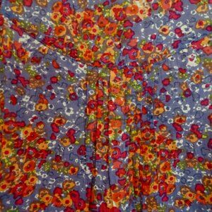 Color: Pink, Periwinkle, orange, floral print. Actual colors are brighter in person.