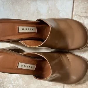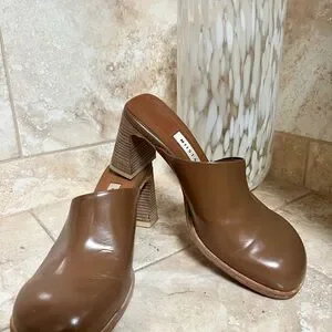 Step out in these super trendy, comfy, and versatile with these elegant brown leather mules. Perfect for any occasion and made with good materials. Worn out once and since has been on a shoe rack. I hope someone enjoys these!