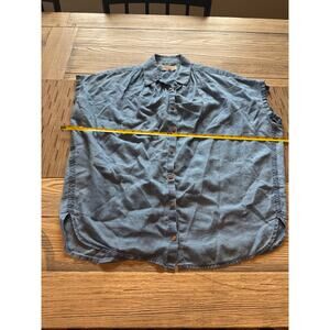 Madewell jean shirt size small. loose fit and flowy can fit medium. cute detail on side too