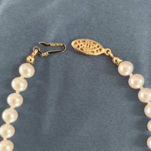 Vintage faux pearl necklace with a G Silver goldtone clasp. 18" length. Worn once. Excellent Condition. Smoke-free home.