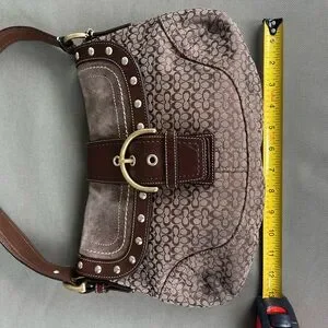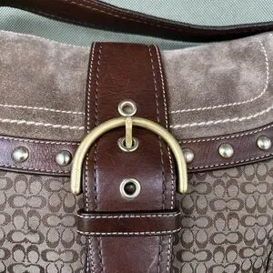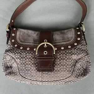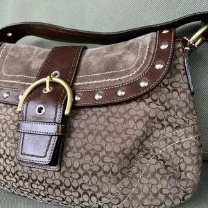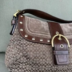 Coach Vintage Signature Soho Studded Brown Suede F11Rare Y2K Buckle Flap F11534