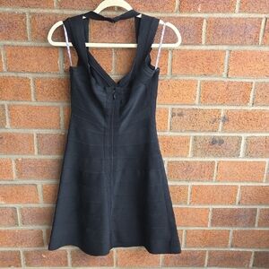HERVE LEGER Black Bruna Sleeveless V Neck Bandage Fit & Flare Dress