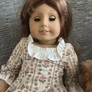 This charming doll features a beautiful floral dress, perfect for imaginative play. The doll's brown hair and black shoes add a classic touch.