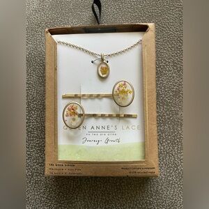Preed Flower Multi Ann Lace Pendant Necklace and Bobby Pin Set 2pc - Gold